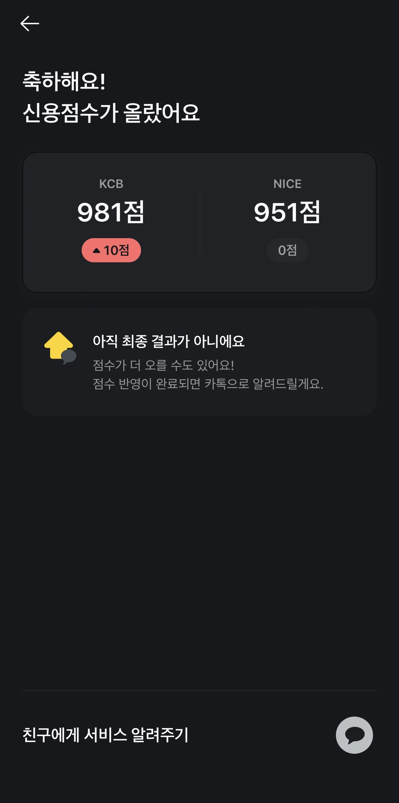 추가로 점수가 상승한다면 결과는 카톡으로 알려 줍니다.