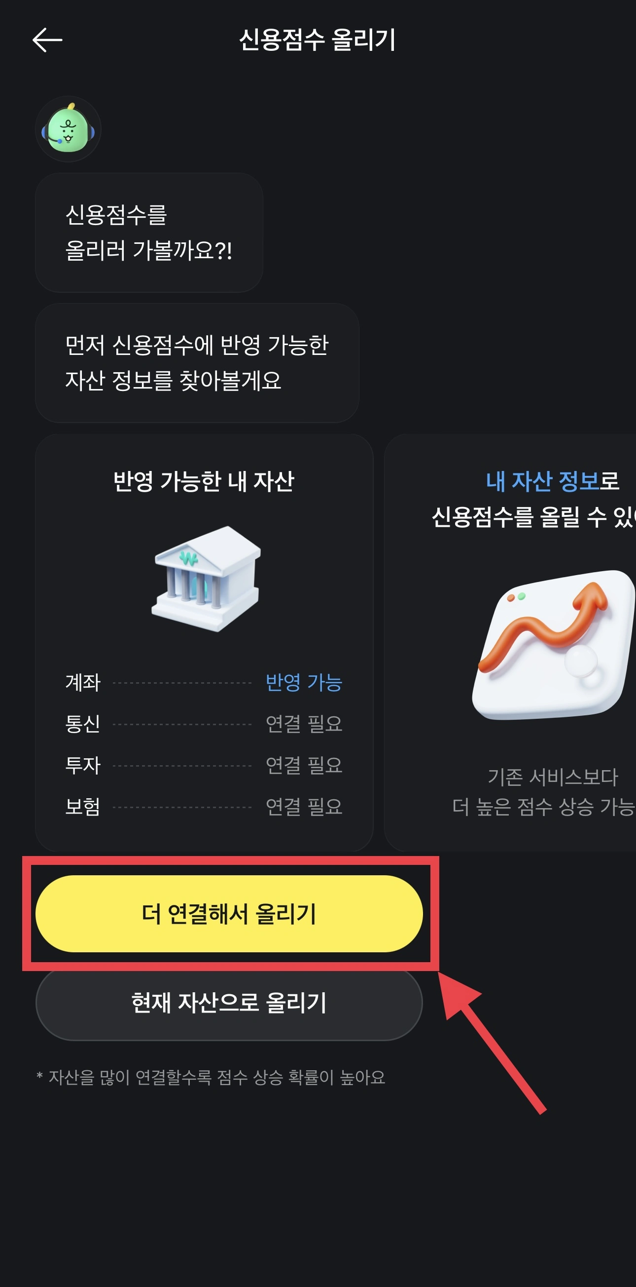 - 반영 가능한 내 자산에서 연결 필요로 나오는게 있을 경우 "더 연결해서 올리기"를 눌러 연결해 준다.