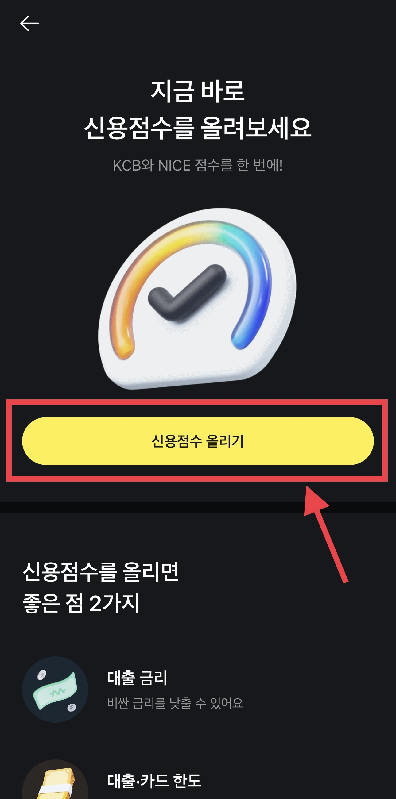 - "신용점수 올리기" 터치
